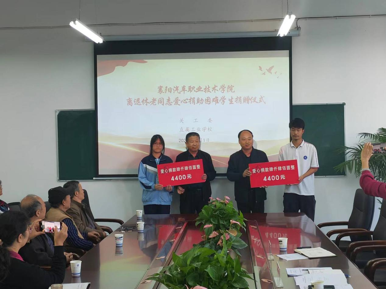 11月1日上午,我校在直属工业学校会议室举行了离退休老同志爱心捐助困难学生捐赠仪式。参会人员有:学校纪委书记李剑、直属工业学校副校长孙涛涛、离退休干部职工各支部党员代表、离退休工作处工作人员、受助学生及部分学生代表。捐赠仪式由离退休工作处处长付克强主持。
